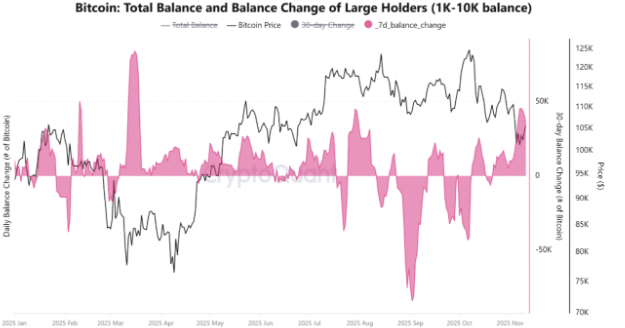 Datos de CryptoQuant muestran que las entidades con más de 1.000 BTC acumularon más de 45.000 BTC en la última semana, aprovechando la capitulación de los inversores minoristas.