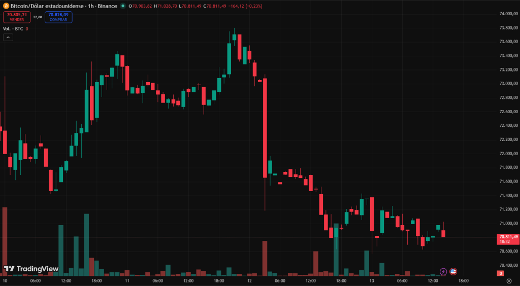 Bitcoin se mantiene alrededor de los $70,000, actuando como ancla del mercado tras varios intentos fallidos de ruptura al alza.