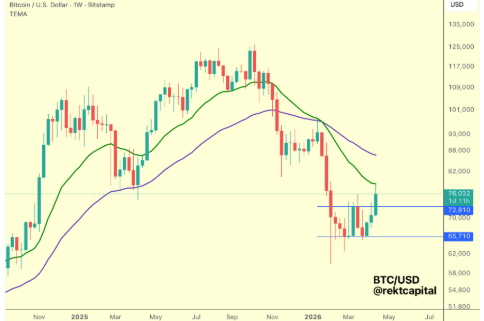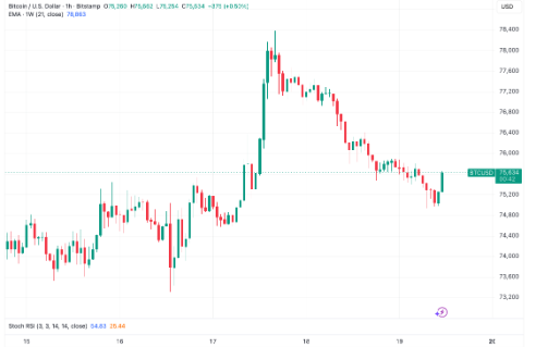 Una pérdida clara de los $75K podría abrir la puerta a una corrección más profunda hacia zonas de liquidez inferiores.