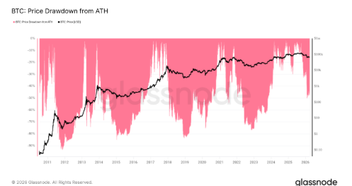 Actualmente, la caída desde el máximo histórico de 2025 ronda el 52%, muy por debajo de ciclos anteriores.