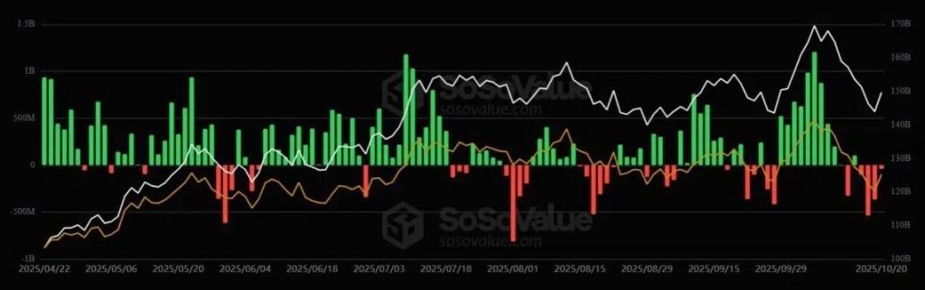 Los fondos cotizados en bolsa (ETF) al contado de Bitcoin que operan en Wall Street atraviesan su cuarta jornada consecutiva de flujos negativos, con una salida neta total de 40,47 millones de dólares registrada el 20 de octubre, según datos de SosoValue.
