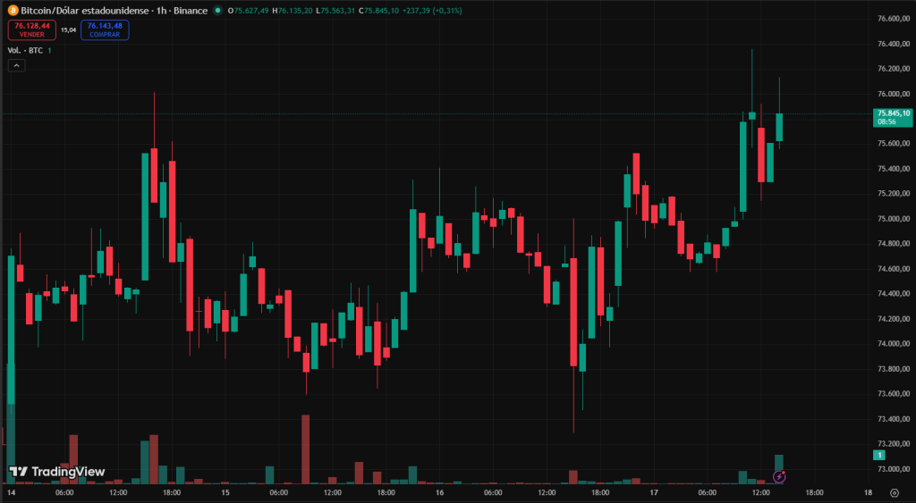 Bitcoin vuelve a acercarse a los $76.000 mientras las funding rates negativas alcanzan máximos del año. Esto significa que gran parte del mercado en derivados sigue apostando a la baja, pese al reciente rebote del precio.