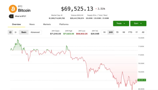 Bitcoin se mantiene sobre los $69.000 pese al deterioro global del mercado.