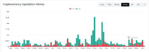 Según datos de mercado, las liquidaciones totales en criptomonedas superaron los 500 millones de dólares, con una gran proporción proveniente de posiciones cortas en Bitcoin.