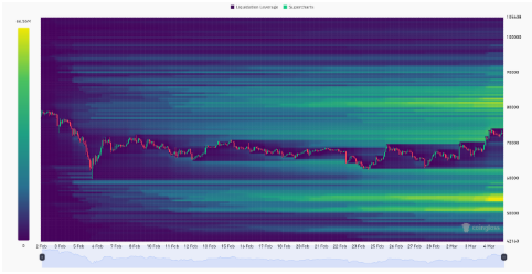 El reciente impulso de Bitcoin hasta los USD 74.000 provocó una ola de liquidaciones en el mercado, eliminando gran parte de las posiciones bajistas.