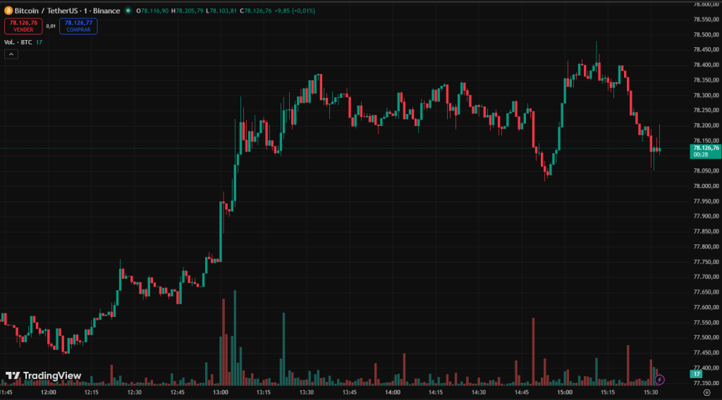 Bitcoin continúa consolidando fuerza sobre $78.000. Si rompe $80.000 con volumen, podría iniciar un nuevo tramo alcista. Mientras tanto, el mercado sigue en fase positiva controlada.