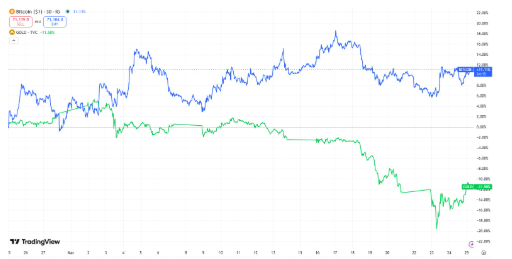 Bitcoin ha mostrado fortaleza relativa durante la guerra entre EE.UU., Israel e Irán. Tras caer hasta los $63.000 al inicio del conflicto, el precio ha recuperado hasta la zona de $71.000, registrando un rebote cercano al 12%.