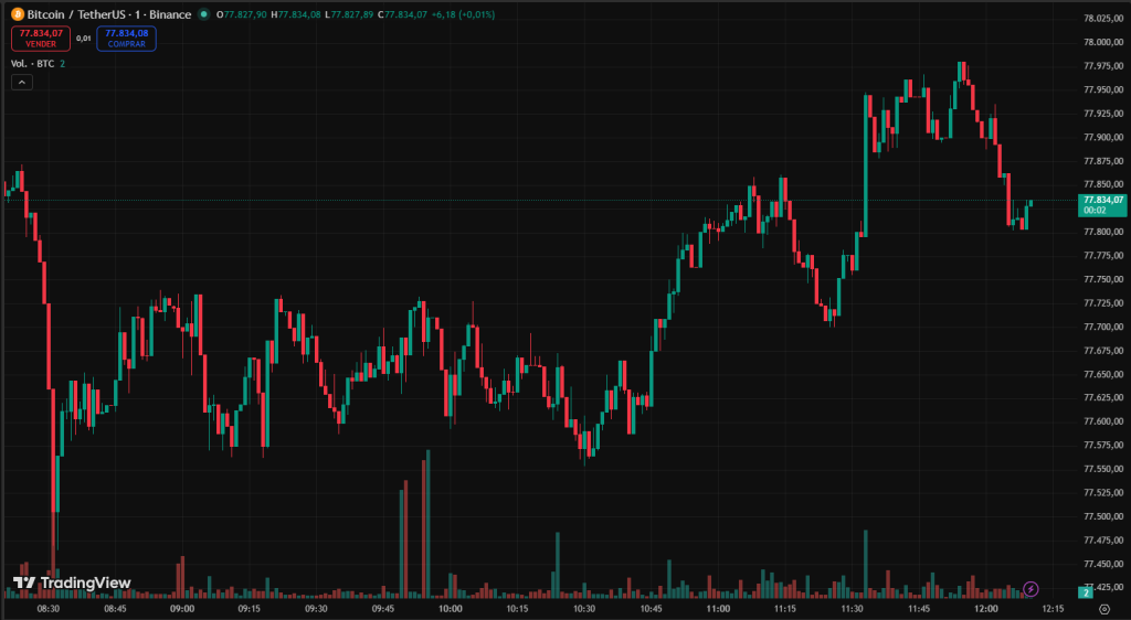 Bitcoin volvió a acercarse hoy a la barrera de $80.000, alcanzando máximos cerca de $79.500 antes de retroceder. Es uno de los intentos más relevantes de las últimas semanas y confirma que esa zona sigue siendo el gran nivel técnico del mercado actual.