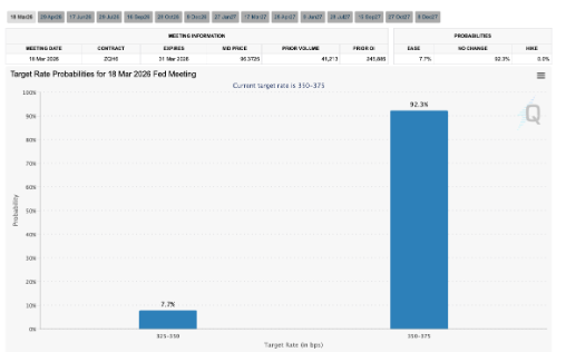 El dato reforzó la narrativa de posibles recortes de tasas por parte de la Federal Reserve, aunque las probabilidades para marzo siguen siendo reducidas según la herramienta FedWatch de CME Group.