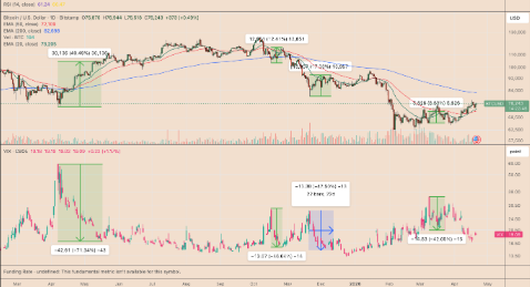 Con el VIX relajándose, Bitcoin gana argumentos para intentar recuperar la zona psicológica de los $80.000.