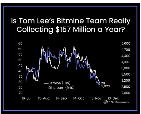 Según un informe de 10x Research, BitMine tiene un coste promedio de 4.051 dólares por ETH, lo que implica pérdidas no realizadas de 1.000 dólares por unidad a precios actuales. En total, la compañía acumula un balance negativo de 3.700 millones de dólares sobre sus 3,56 millones de ETH.
