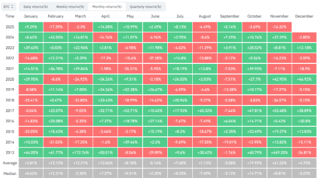 Históricamente, noviembre es el mejor mes para Bitcoin, con un rendimiento medio del 41,2%.