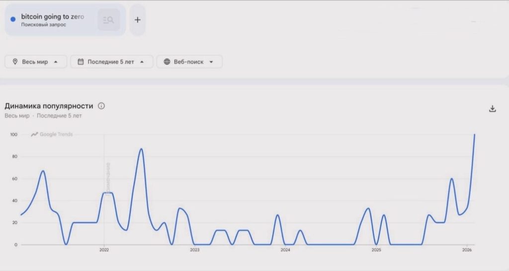 Las búsquedas de frases como “Bitcoin going to zero” o “Is Bitcoin dead?” se han disparado globalmente, según datos de Google Trends.