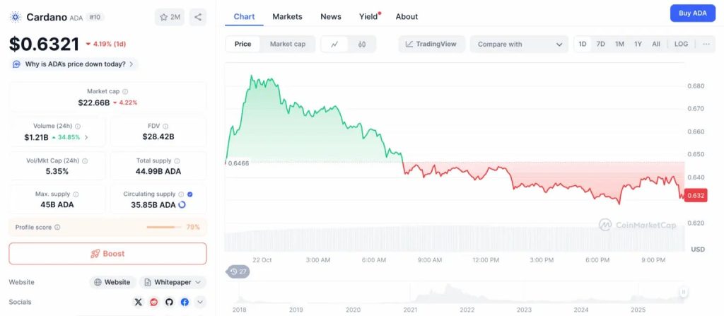 Pese a su reputación como red sólida y bien estructurada, ADA mantiene un rango de cotización estable entre 0,60 y 0,80 dólares, reflejando una menor volatilidad en comparación con otros activos del mercado.