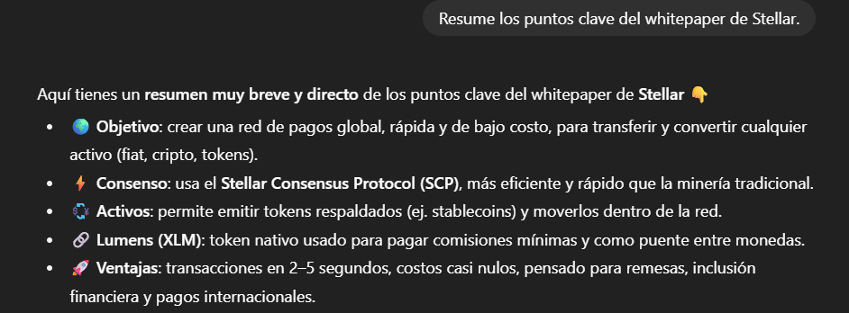 👉 “Resume los puntos clave del whitepaper de Stellar.”