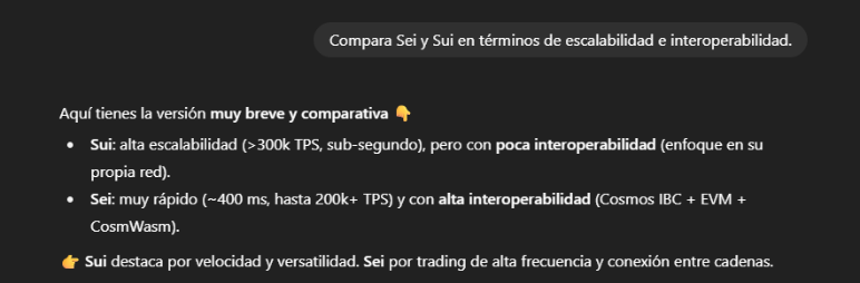 👉 “Compara Sei y Sui en términos de escalabilidad e interoperabilidad.”
