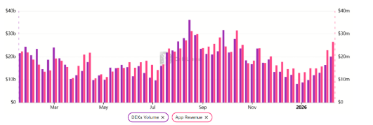 - Los ingresos semanales de DApps alcanzaron USD 26,6 millones