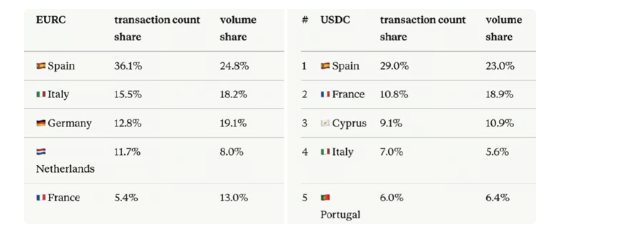 También destacan que los usuarios españoles estuvieron entre los primeros en adoptar EURC y muestran fuerte actividad en productos basados en stablecoins.