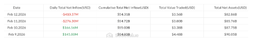 Los ETF de Bitcoin al contado en Estados Unidos registraron USD 410,4 millones en salidas en una sola jornada, ampliando las pérdidas semanales a más de USD 375 millones, según datos de mercado.