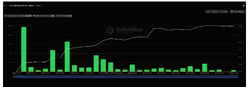 Los ETFs spot de XRP en Estados Unidos mantienen un flujo positivo de capital, en contraste con las fuertes salidas registradas en los fondos de Bitcoin y Ethereum durante el mes.