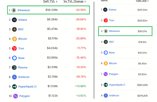 Ethereum mantiene el liderazgo en valor total bloqueado (TVL) y comisiones si se incluye su ecosistema de capa 2. Sin embargo, crecen las críticas por la dependencia de subsidios a los rollups y los retos de descentralización y seguridad en algunas soluciones L2.