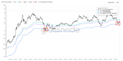 Los análisis indican que la recuperación actual podría enfrentarse a resistencia alrededor de $2.650, donde se encuentra la primera banda superior del indicador MVRV.