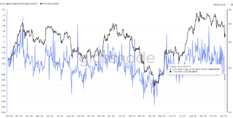 El indicador Spent Output Profit Ratio (SOPR) cayó a 0,96, lo que muestra que muchos inversores están vendiendo ETH con pérdidas.