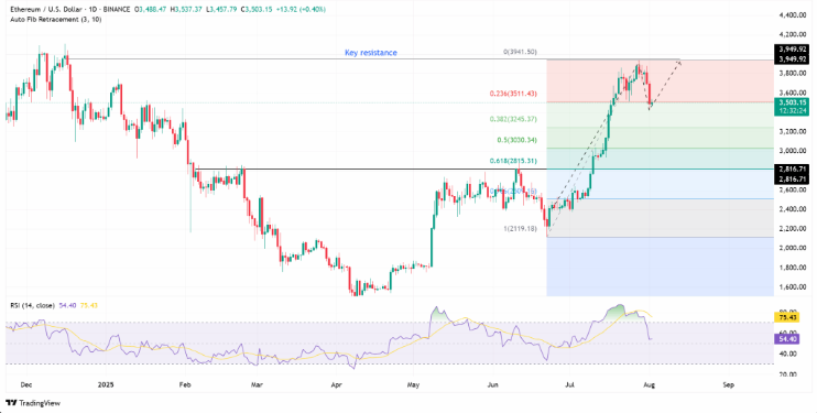 Ethereum pierde fuerza tras tocar resistencia clave