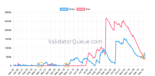 La cantidad de Ethereum en cola para ser staked ha superado al volumen pendiente de retirada, una señal históricamente alcista para el precio. Actualmente, más de 745.000 ETH esperan entrar en staking, frente a unas 360.000 ETH en la cola de salida, reduciendo la presión vendedora en el mercado.
