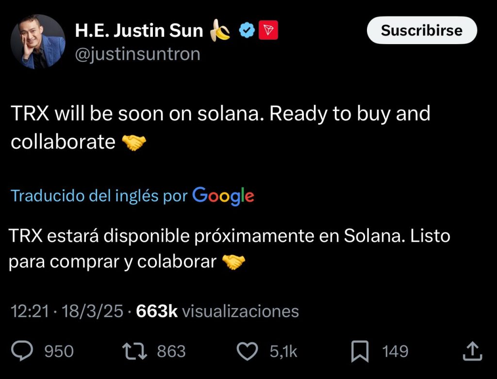 La decisión de Justin Sun de expandir TRX a la blockchain de Solana representa un paso significativo en la interoperabilidad entre plataformas. La expansión de TRX a Solana permitirá a los usuarios de TRX beneficiarse de las características de Solana, como su alta velocidad de transacción y bajas comisiones. Además, abre la puerta a nuevas oportunidades en el ámbito de las finanzas descentralizadas (DeFi) y otros casos de uso emergentes.