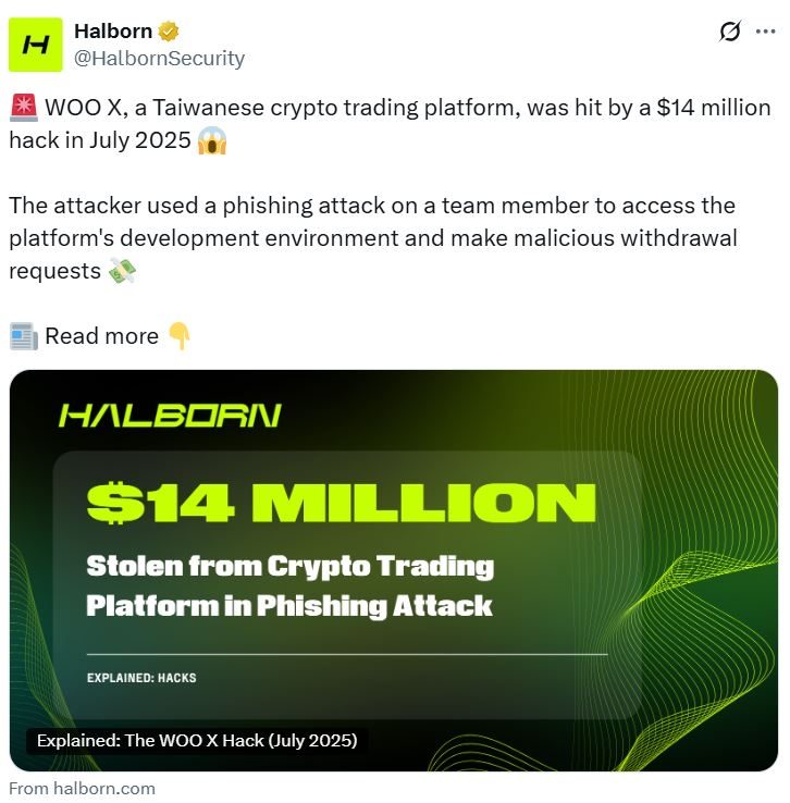 - WOO X: ataque de phishing el 24 de julio, con pérdidas de al menos $14 millones.