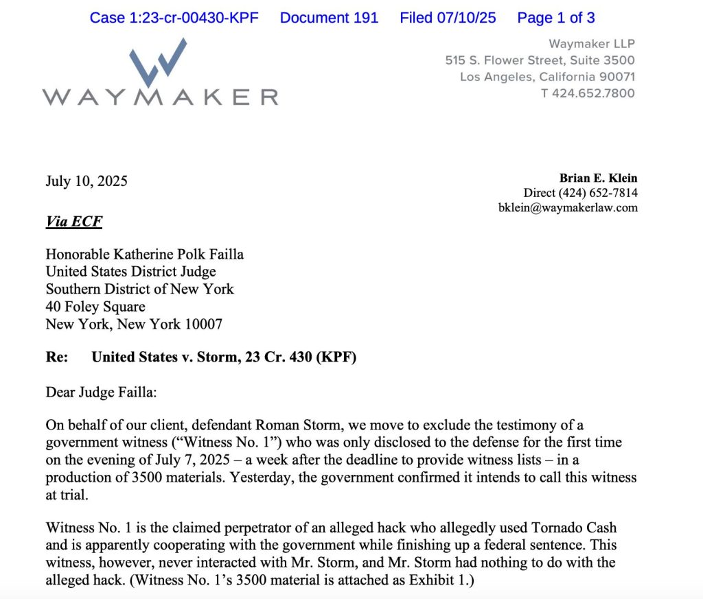 Roman Storm, cofundador y desarrollador de Tornado Cash, se prepara para enfrentar un juicio penal en el Tribunal de Distrito de EE. UU. para el Distrito Sur de Nueva York (SDNY), pero sus abogados han advertido que podrían solicitar un aplazamiento de última hora si se permite declarar a un testigo clave vinculado a un hackeo.