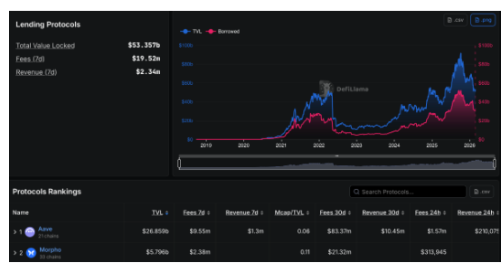 - En DeFi, protocolos como Aave lideran el mercado con cerca de $26.9 mil millones en TVL.