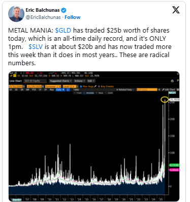 Durante la última jornada, los mercados de plata generaron cerca de 1.600 millones de dólares en volumen, muy por encima del oro, que movió unos 553 millones, aunque todavía lejos de los 6.500 millones negociados en Bitcoin.