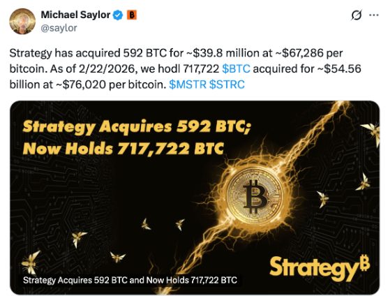 Saylor dirige Strategy, la mayor tesorería corporativa de Bitcoin del mundo, con más de 717.000 BTC en balance tras su compra número 100 anunciada recientemente.
