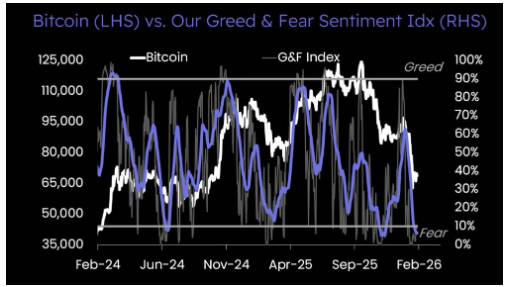 El mercado cripto atraviesa uno de sus momentos de mayor pesimismo en años, con los principales indicadores de sentimiento marcando “miedo extremo”. Sin embargo, la firma de análisis Matrixport sugiere que estas condiciones podrían estar señalando la formación de un posible suelo en Bitcoin.