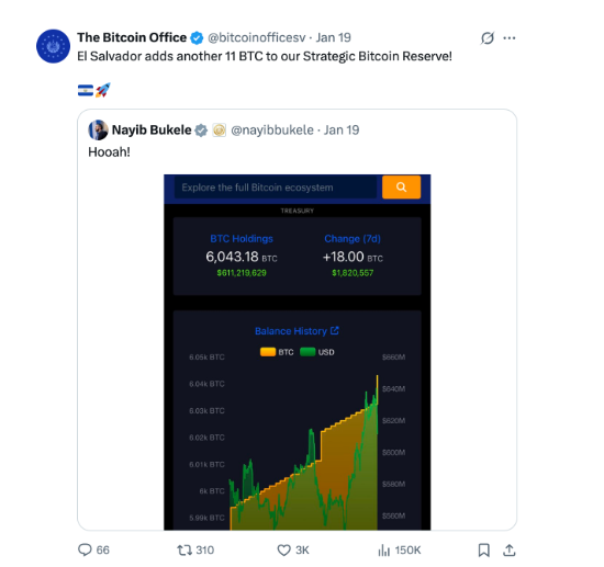 Pese a la retirada institucional en El Salvador, el país mantiene su reputación como laboratorio pionero de adopción de Bitcoin, con 6.374 BTC en sus reservas, equivalentes a aproximadamente $654,8 millones al valor actual.