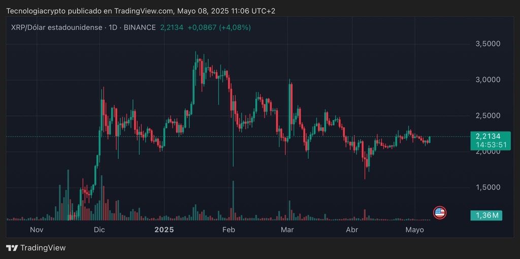Para alcanzar esa capitalización, el precio de XRP tendría que situarse alrededor de los $8,5. Algunos analistas ya anticipan un rally más allá de los $10 hacia finales de 2025. Actualmente, XRP cotiza a $2,17, respaldado por un volumen de negociación de $4.350 millones.