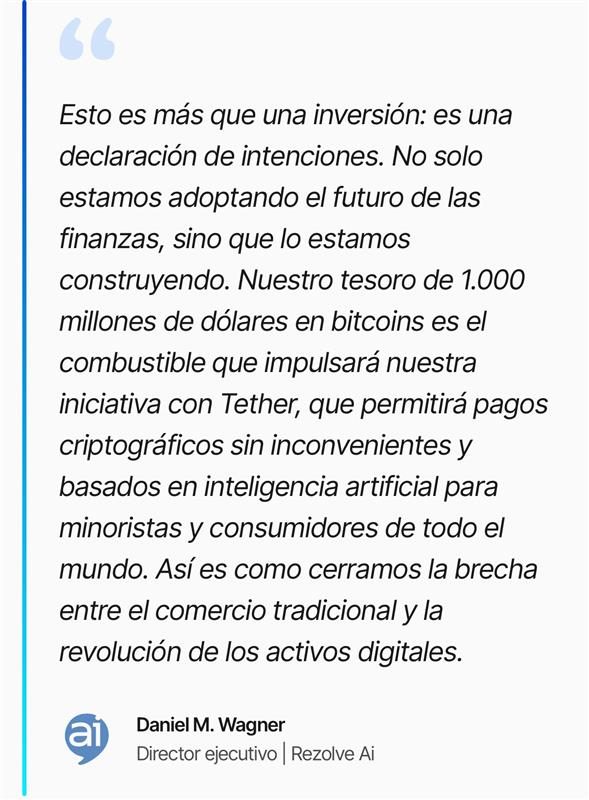 Rezolve AI ha anunciado la creación de un fondo de $1,000 millones en Bitcoin, con el objetivo de impulsar la convergencia entre inteligencia artificial (IA) y comercio basado en criptomonedas. Esta iniciativa busca fortalecer la adopción de la IA en el ecosistema financiero digital, promoviendo soluciones innovadoras para pagos y transacciones con criptoactivos.