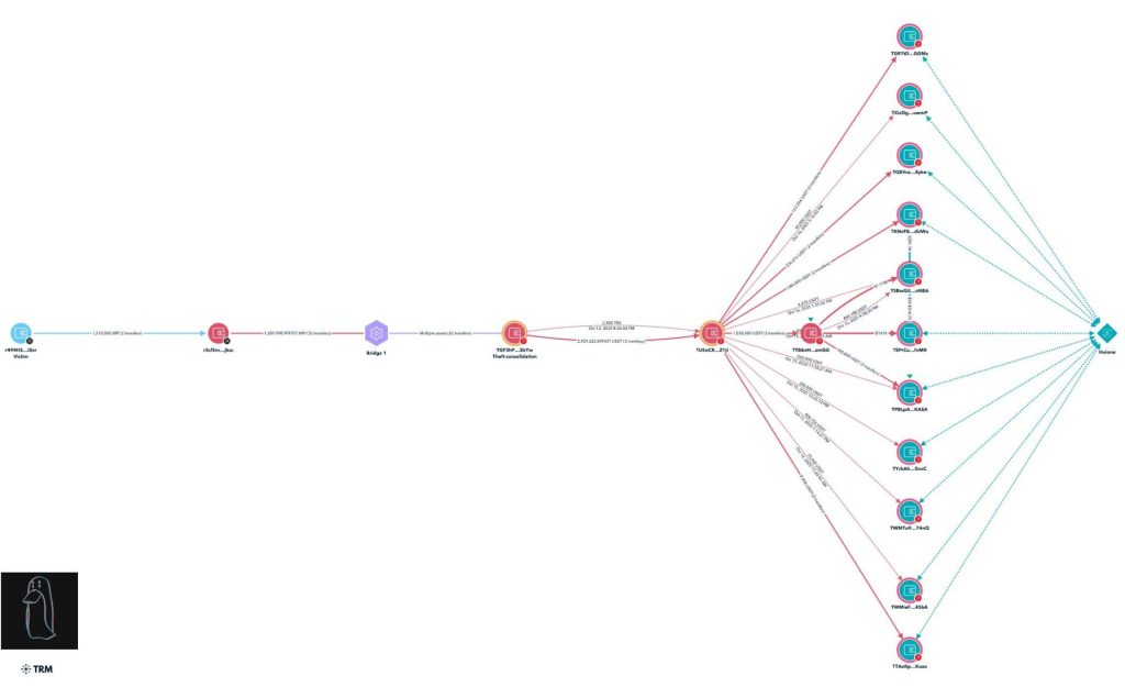 Según su investigación, los fondos fueron transferidos entre más de 120 direcciones y redes blockchain antes de ser lavados a través de plataformas OTC asociadas con Huione, una empresa señalada por el Departamento del Tesoro de EE. UU. por facilitar operaciones ilícitas en Asia.