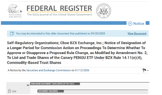 - ETF Canary Pudgy Penguins (PENGU), propuesto para cotizar en Cboe BZX, que busca exposición al ecosistema Pudgy Penguins, una de las colecciones NFT más reconocidas del mercado.