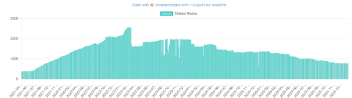 El número de validadores de Solana ha caído un 68% desde 2023, pasando de un máximo de 2.560 nodos en marzo de ese año a 795 validadores activos, según datos recientes de Solanacompass. La reducción se acelera a medida que los costes operativos y la competencia de validadores con comisiones cero hacen inviable la actividad para operadores pequeños e independientes.