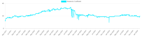 La contracción no solo afecta al número de nodos. El coeficiente de Nakamoto de Solana —una métrica clave de descentralización— cayó un 35%, desde 31 en 2023 hasta 20 actualmente. Esto indica que una porción cada vez mayor del SOL en staking está controlada por menos entidades, elevando el riesgo de concentración.