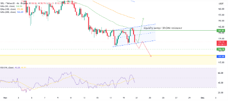 Aunque SOL logró marcar un máximo y mínimo creciente en temporalidades cortas, el rally fue frenado en seco por la EMA de 50, devolviendo el precio a los 132 dólares.
