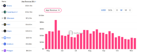 Además, Solana continúa liderando el ranking de ingresos por aplicaciones descentralizadas (DApps), consolidando una ventaja competitiva sostenida frente a otras redes.