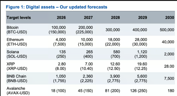 - Bitcoin: USD 100.000 a cierre de 2026 (antes USD 150.000).