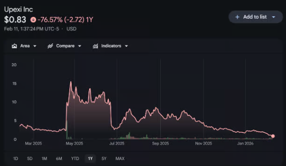 Sin embargo, las acciones de Upexi han caído drásticamente hasta alrededor de $0,90, lejos de los máximos superiores a $22 alcanzados tras adoptar su estrategia de tesorería cripto.