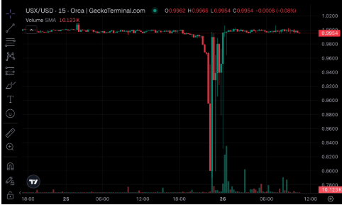La stablecoin USX, nativa de la red Solana, sufrió un breve depeg en exchanges descentralizados como Orca y Raydium, donde la liquidez disponible fue insuficiente para absorber una oleada de ventas.