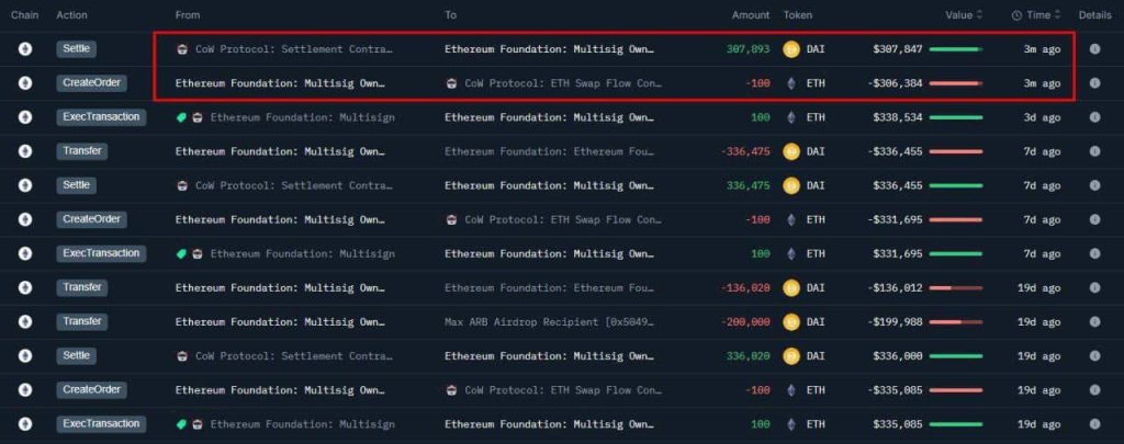 La Fundación Ethereum, organización responsable de supervisar el desarrollo y sostenibilidad de la blockchain de Ethereum, ha despertado controversia en la comunidad cripto. Durante las últimas semanas, la fundación ha llevado a cabo múltiples ventas de 100 ETH, una decisión que ha generado dudas sobre sus motivaciones y su impacto en el mercado, especialmente en un contexto de caídas significativas en el precio de Ethereum.