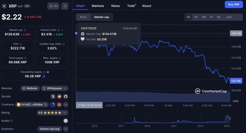 XRP ha sufrido una caída masiva en su capitalización de mercado, perdiendo $7 mil millones en tan solo 24 horas. La criptomoneda ha sido arrastrada por un sentimiento negativo en el mercado, lo que ha generado incertidumbre entre los inversores.